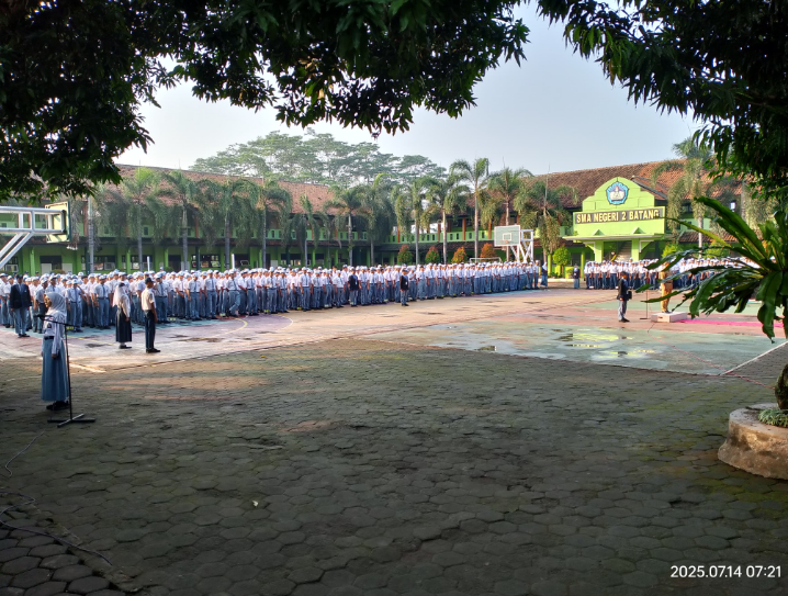 Masa Pengenalan Lingkungan Sekolah (MPLS) di SMA Negeri 2 Batang pada hari Senin, 14 Juli 2025 akan berlangsung sesuai dengan jadwal yang ditetapkan oleh pemerintah daerah dan satuan pendidikan. Secara umum, MPLS di Jawa Tengah, termasuk di Batang, akan dimulai pada tanggal 14 Juli 2025 dan berlangsung selama tiga hingga lima hari, tergantung pada kebijakan sekolah masing-masing. Pada hari ini Senin tanggal 14 Juli 2025 dilaksanakan upacara pembukaan Masa Pengenalan Lingkungan Sekolah.