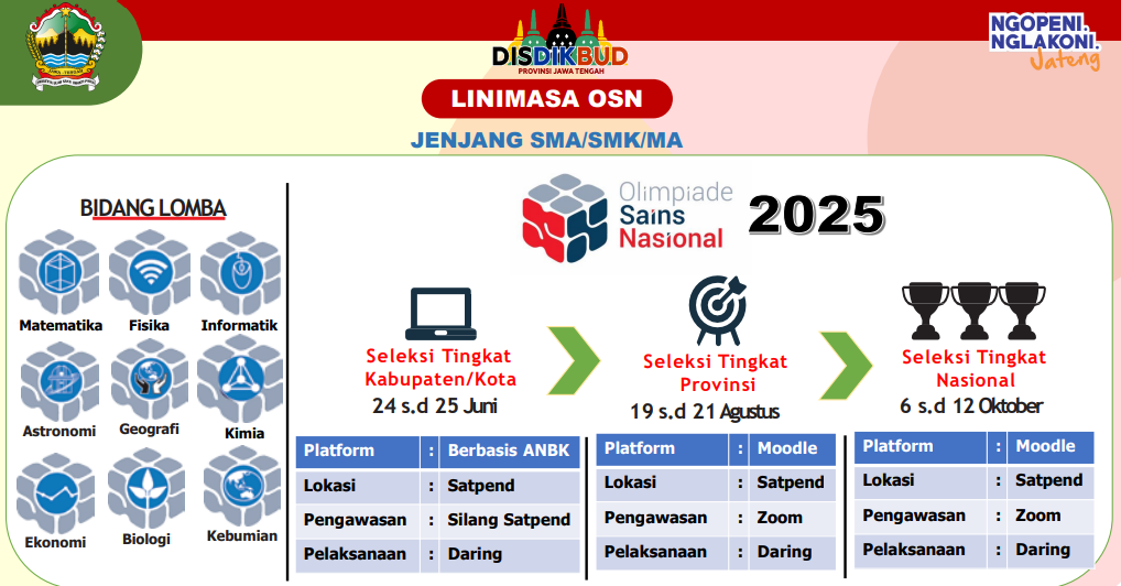 | 2 | Uji Coba OSNK Uji Coba OSNK di SMA Negeri 2 Batang akan diikuti peserta OSN-K sebanyak 45 siswa dalam 9 mata pelajaran yang dilombakan dengan jadwal sebagai berikut: